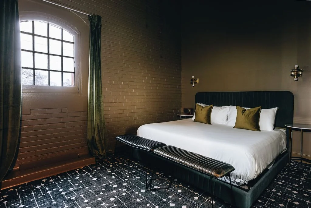 Experience the Art Deco-inspired charm of our King Suites at The Bellwether. Located on the second floor, each suite offers a unique ambiance with a luxurious king bed and contemporary interiors honoring local history and Highlands landmarks. You'll find in-room minibars, air conditioning, and Smart TVs with wireless internet. Please note that access to these suites requires the use of stairs, as The Bellwether does not have an elevator. Whether for a brief visit or extended stay, our King Suites offer an elegant and comfortable retreat in the heart of Louisville.